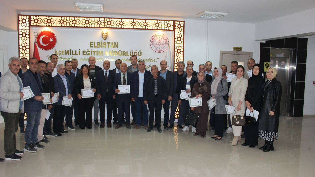 Elbistan İlçe Milli Eğitim Müdürü İlyas Gezer, ilçede görev yapan ve maaşla ödüllendirilen öğretmenler ile idarecilere belgelerini takdim etti.