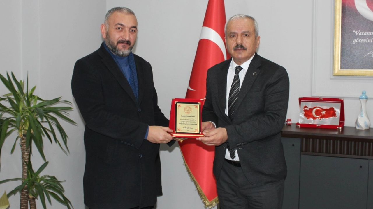 Elbistan İlçe Milli Eğitim Müdürü Gezer İlyas Gezer, Elbistan’da eğitime sağladığı kıymetli maddi ve manevi desteklerden dolayı iş insanı Hasan Sarı’ya plaket takdim etti.