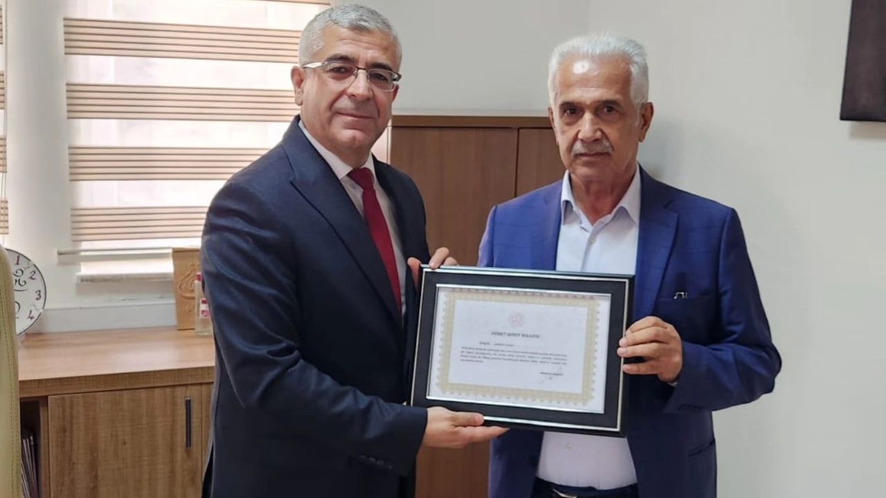 Afşin Milli Eğitim Müdürlüğünde uzun yıllar görev yaparak eğitime önemli katkılar sunan ve emekliliğe ayrılan öğretmen Remzi Yayıcı’ya Hizmet Şeref Belgesi takdim edildi.