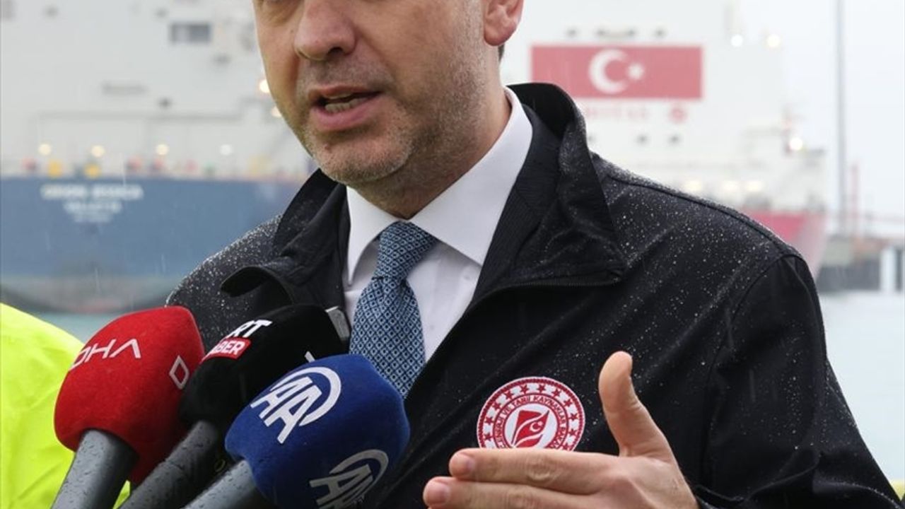 'Vatandaşlarımızın özellikle bu içinde bulunduğumuz kış mevsiminde çok daha yoğun bir şekilde hissettiği, doğal gaz ihtiyacımızın bir kısmını biz malumunuz boru hatlarımızla ama yine önemli bir miktarını, son dönemde yaptığımız yatırımlarla sıvılaştırılmış bir şekilde gemilerle alıyoruz. Tabii bu ülkemize gemilerle gelen sıvılaştırılmış doğal gazı da tekrar sistemimize kullanabilmek için gazlaştırmamız gerekiyor. Arkamızda görmüş olduğunuz bizim Ertuğrul Gazi gemimiz, işte bu işlevi yerine getiriyor ve günde yaklaşık 28 milyon metreküp sıvı haldeki doğal gazı, sıvılaştırılmış gelen doğal gazı, gaz fazına döndürüyor. Dolayısıyla burası bizim arz güvenliğimiz için, Türkiye için çok önemli bir tesis, onun içerisindeyiz. Bu geçtiğimiz 8 yılda yaklaşık 140'a yakın gemiden gemiye bu transferi gerçekleştirdik. İşte şimdi aslında 139'uncusunu arkamızda görüyorsunuz, bu işlem gerçekleşiyor ve burada günde 28 milyon metreküp, tabii ne demek bu? Şimdi içinde bulunduğumuz işte Hatay olmak üzere, Osmaniye, bu civardaki yaklaşık 17 ilin kış aylarında ihtiyaç duyduğu gazı aslında biz buradaki bu tesisimizden, gemimizden sağlamış oluyoruz. Dolayısıyla özellikle bu bölgemizin arz güvenliği için hakikaten çok önemli.