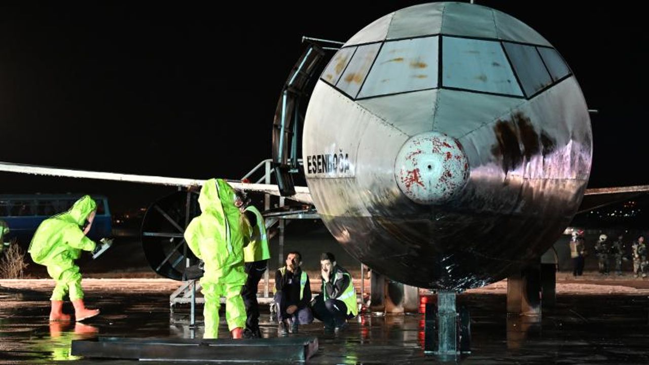 Tatbikatta kullanılan uçak maketini personel yaptı