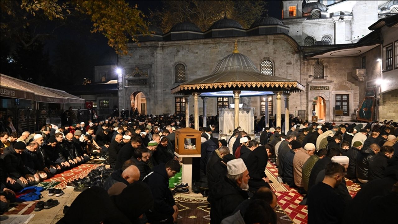 Recep, şaban ve ramazanı kapsayan mukaddes üç ayların başlaması dolayısıyla Eyüp Sultan Camisi'nde sabah namazında dua edildi.