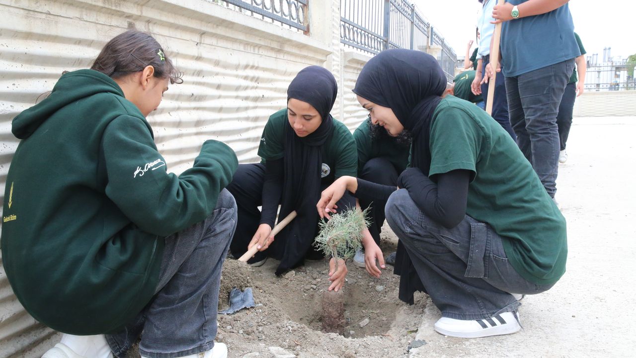 Hatay'da tarım lisesi öğrencileri, fidan dikerek hem okullarının çevresini yeşillendiriyor hem de uygulamalı eğitim alıyor.