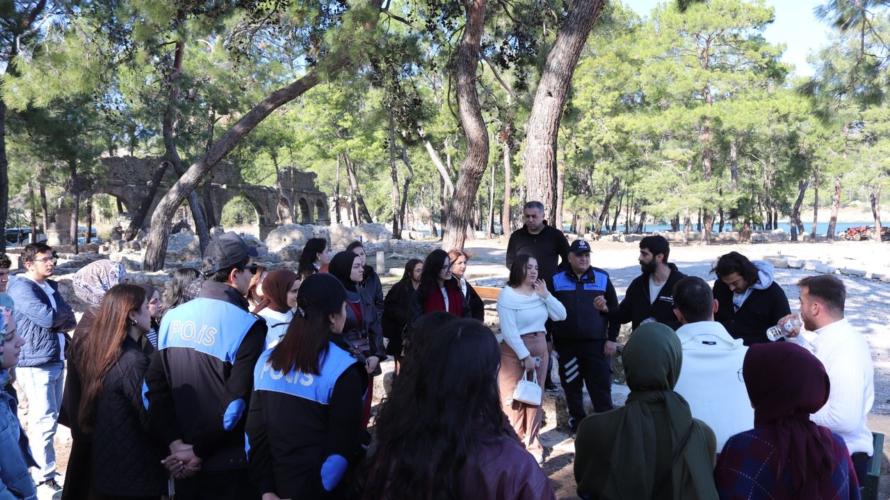 Tarihin ve doğanın iç içe geçtiği Phaselis Ören Yeri'ndeki gezide, öğrencilere antik kentin tarihi hakkında bilgi verildi.