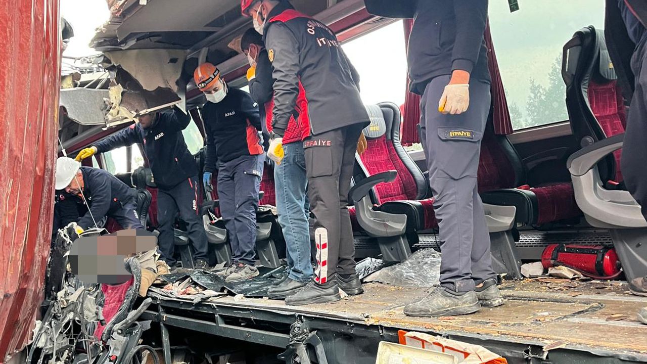 Hayatını kaybedenlerin kimlik tespit çalışmalarının sürdüğü anlatılan açıklamada yolun trafiğe kapatıldığı kaydedildi.