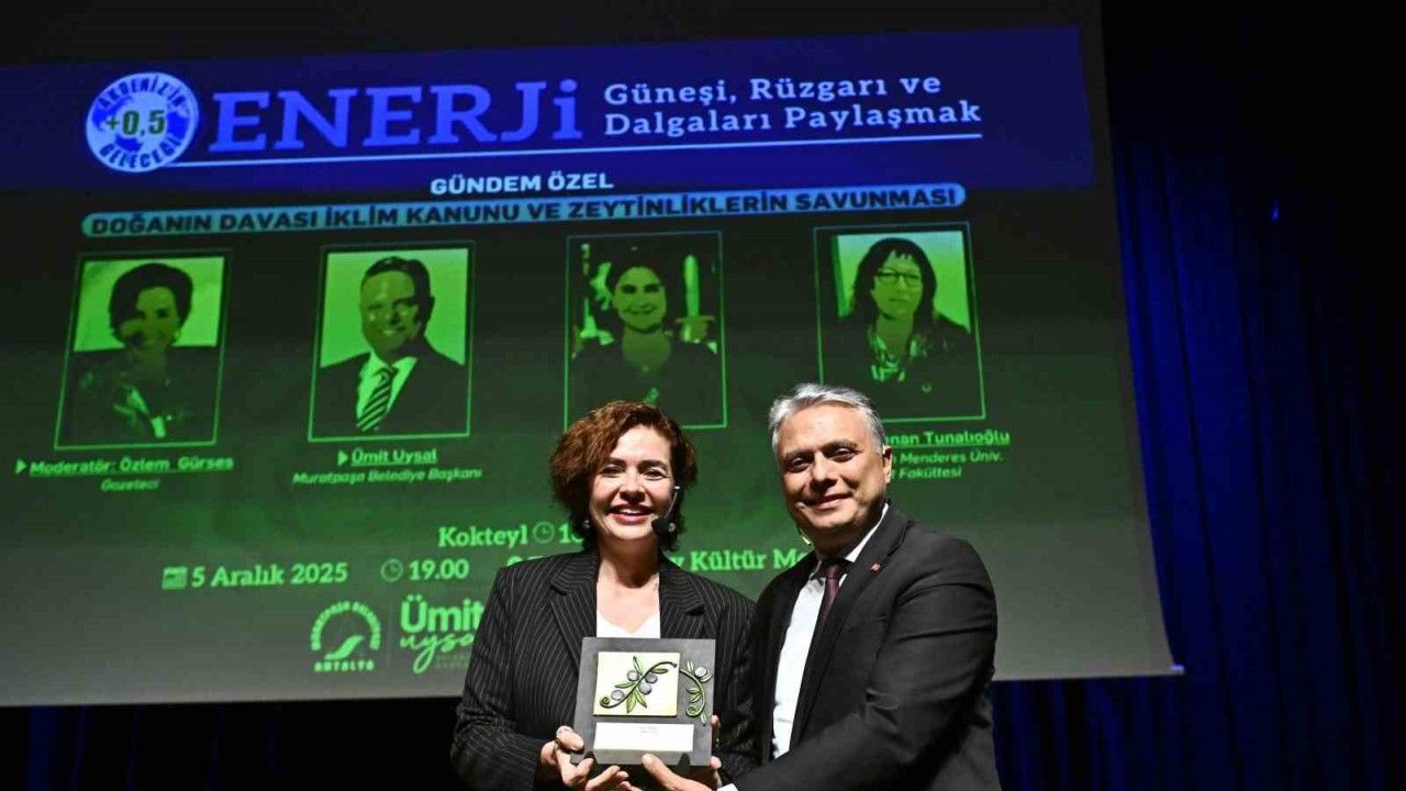 Antalya Muratpaşa Belediyesi’nin "Enerji: Güneşi, Rüzgârı ve Dalgaları Paylaşmak" temasıyla bu yıl 5’incisini düzenlediği +0.5 Akdeniz’in Geleceği Çalıştayı kapsamında Türkan Şoray Kültür Merkezi’nde gazeteci Özlem Gürses moderatörlüğünde "Doğanın Davası: İklim Kanunu ve Zeytinliklerin Savunması" başlıklı Gündem Özel oturumu gerçekleştirildi.