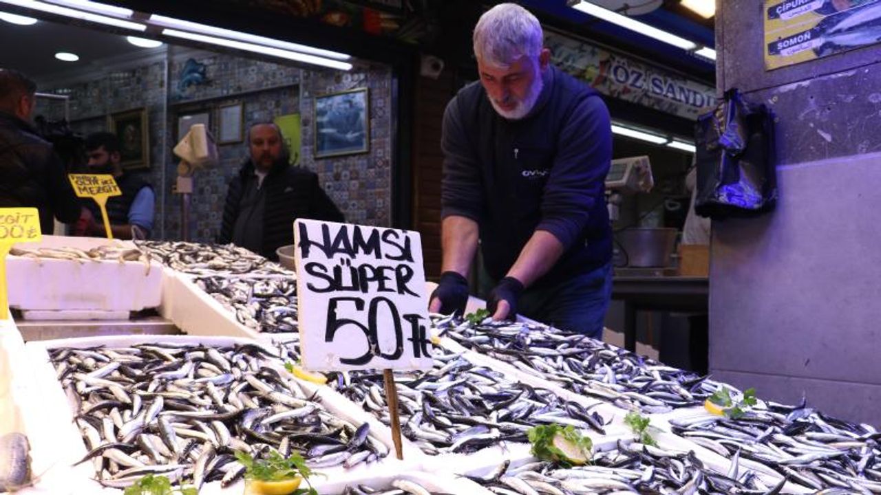 Rize'de son haftalarda bol miktarda avlanan hamsi, balıkçı tezgahlarında 50 liradan satışa sunuluyor.