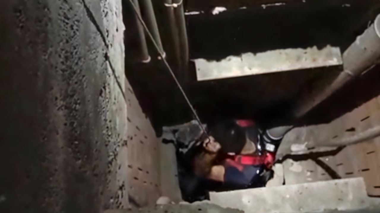 Olay yerine gelen itfaiye ekipleri, kedinin yaklaşık 6-7 metre derinlikte mahsur kaldığını tespit etti.