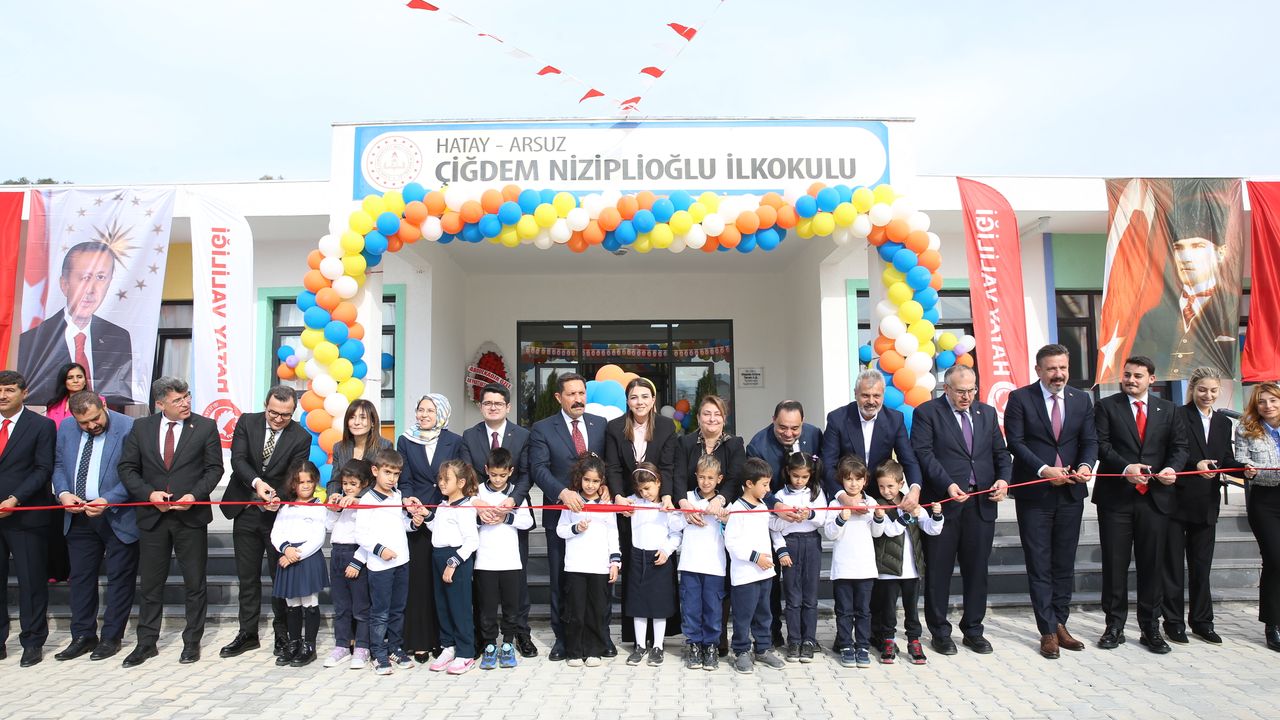 Hatay'ın Arsuz ilçesinde 6 Şubat 2023'teki depremlerde hasar alması nedeniyle yıkılan ilkokulun, hayırseverlerin desteğiyle inşa edilen yeni binası törenle açıldı.