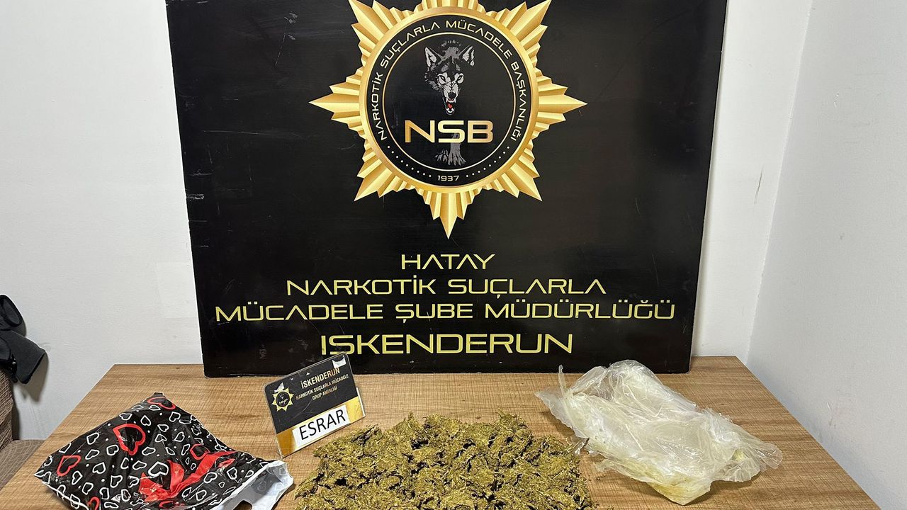 HATAY (AA) - Hatay'ın İskenderun ilçesinde, polis ekiplerince durdurulan hafif ticari araçta 1 kilo 100 gram esrar ele geçirildi.