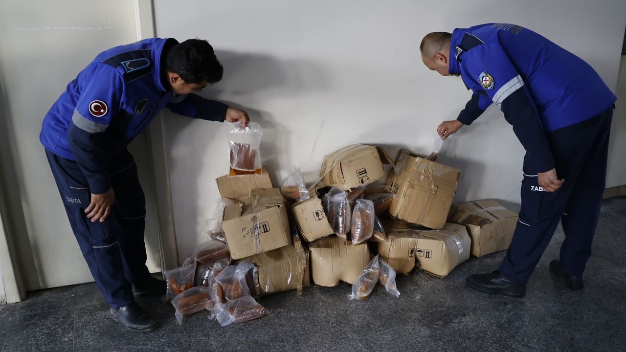 Hatay'da Şehirlerarası Otobüs Terminali'nde yapılan denetimde bulunan 100 kilogram bozulmuş kabak tatlısı imha edildi.