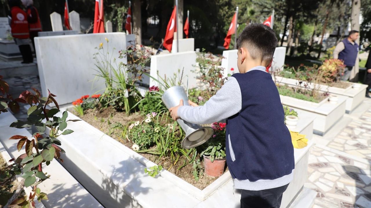 Hatay'da Ramazan Bayramı öncesi şehit mezarlarının bakım, onarım ve temizliği için çalışma gerçekleştirildi.