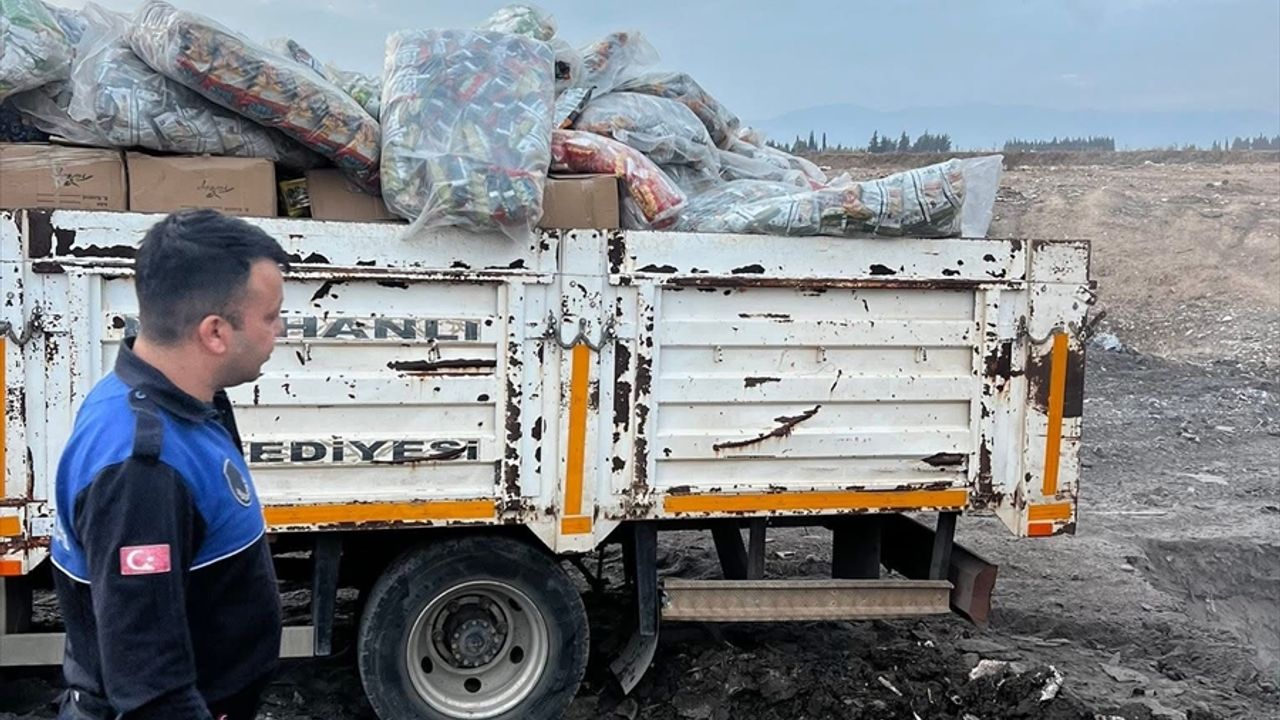 Hatay'ın Reyhanlı ilçesinde, marketlerde bulunan son tüketim tarihi geçmiş çikolata, cips ve 2 ton şekerleme imha edildi.