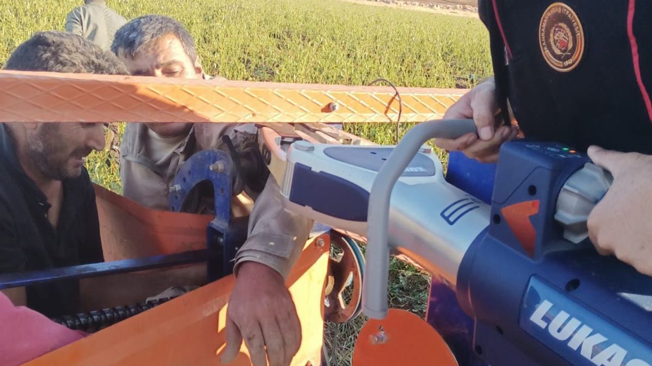 Kahramanmaraş'ta tarlada çalışırken kolu hortum sarma makinesine sıkışan bir kişi itfaiye ekipleri tarafından kurtarıldı.