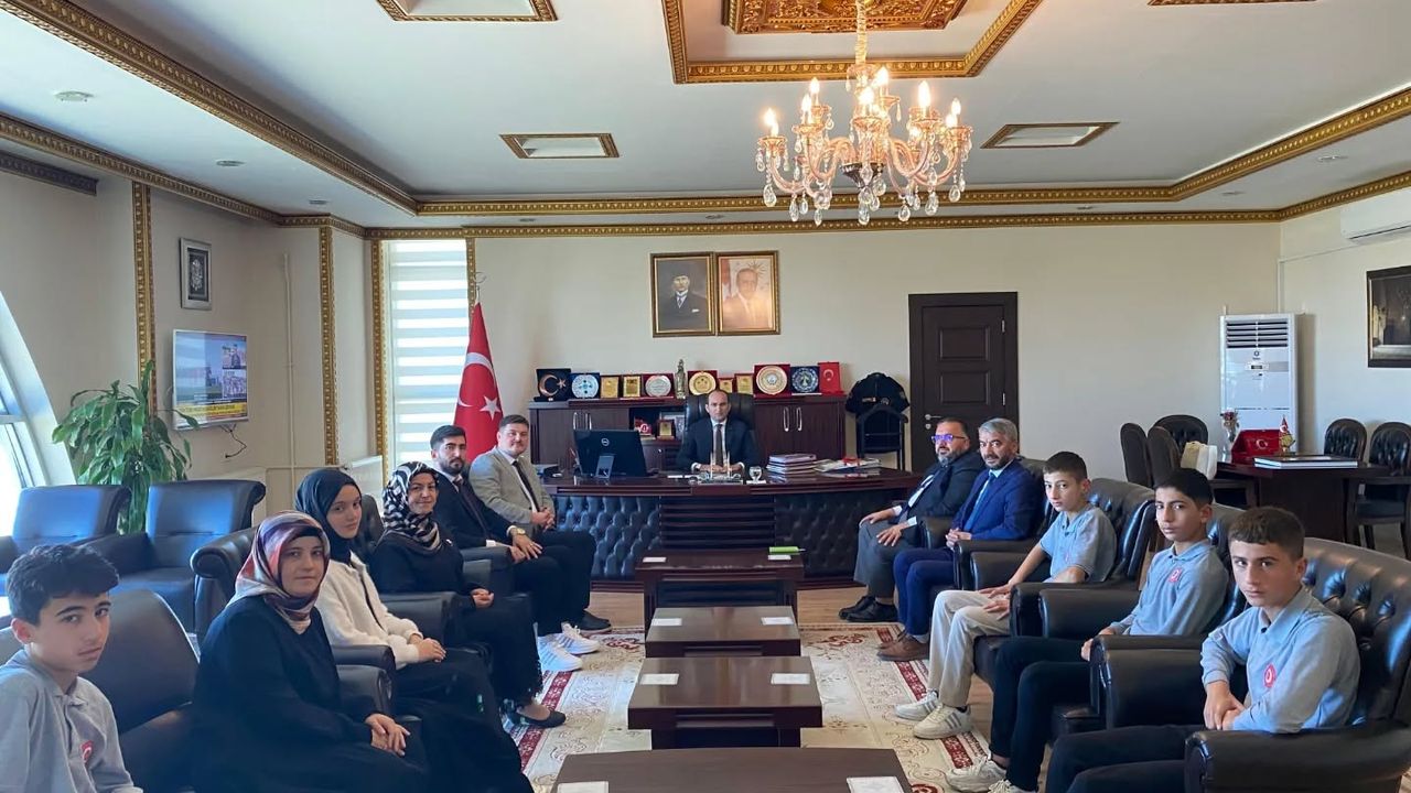 İlçe Müftüsü Fatih Gökçek, Hafızlık Kur’an Kursu Dernek Başkanı, erkek ve kız Kur’an kursu yöneticileri ile birlikte hafızlıklarını tamamlayan öğrencilerle Afşin Kaymakamı Muammer Sarıdoğan’ı makamında ziyaret etti.