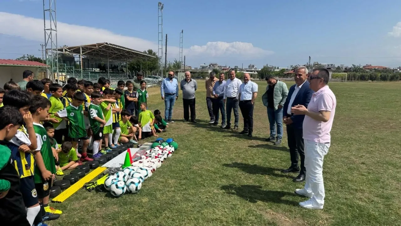 Gözcüler Mahallesi'ndeki futbol sahasında düzenlenen etkinlikte kulüp temsilcilerine çeşitli spor malzemeleri dağıtıldı.