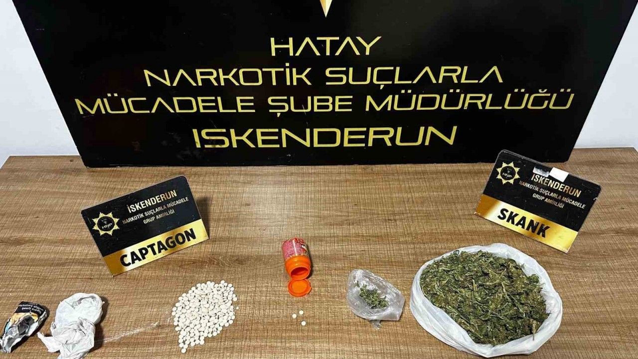 İl Emniyet Müdürlüğü görevlilerince uyuşturucu imal ve ticaretine yönelik çalışmalarını sürdürüyor. İskenderun ilçesinde A.Y. isimli şahsın Meydan Mahallesindeki konteynerinde yapılan aramada;2 parça halinde daralı 34 gram uyuşturucu metamfetamin maddesi, M.O. isimli şahsın Moderen Evler mahallesindeki ikametinde ve aracındaki aramada; 2 parça halinde daralı 185 gram Esrar, 283 Adet Captagon ele geçirildi.