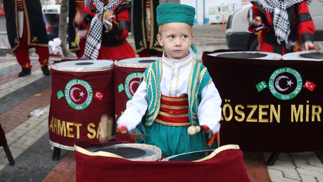 Isparta'da Göktuğ Yaşar Erbil'in kös çaldığı ve kurucusu olduğu Erenler Mehter Takımı'nda 2 oğlu ve 4 yaşındaki torunu da görev alıyor.