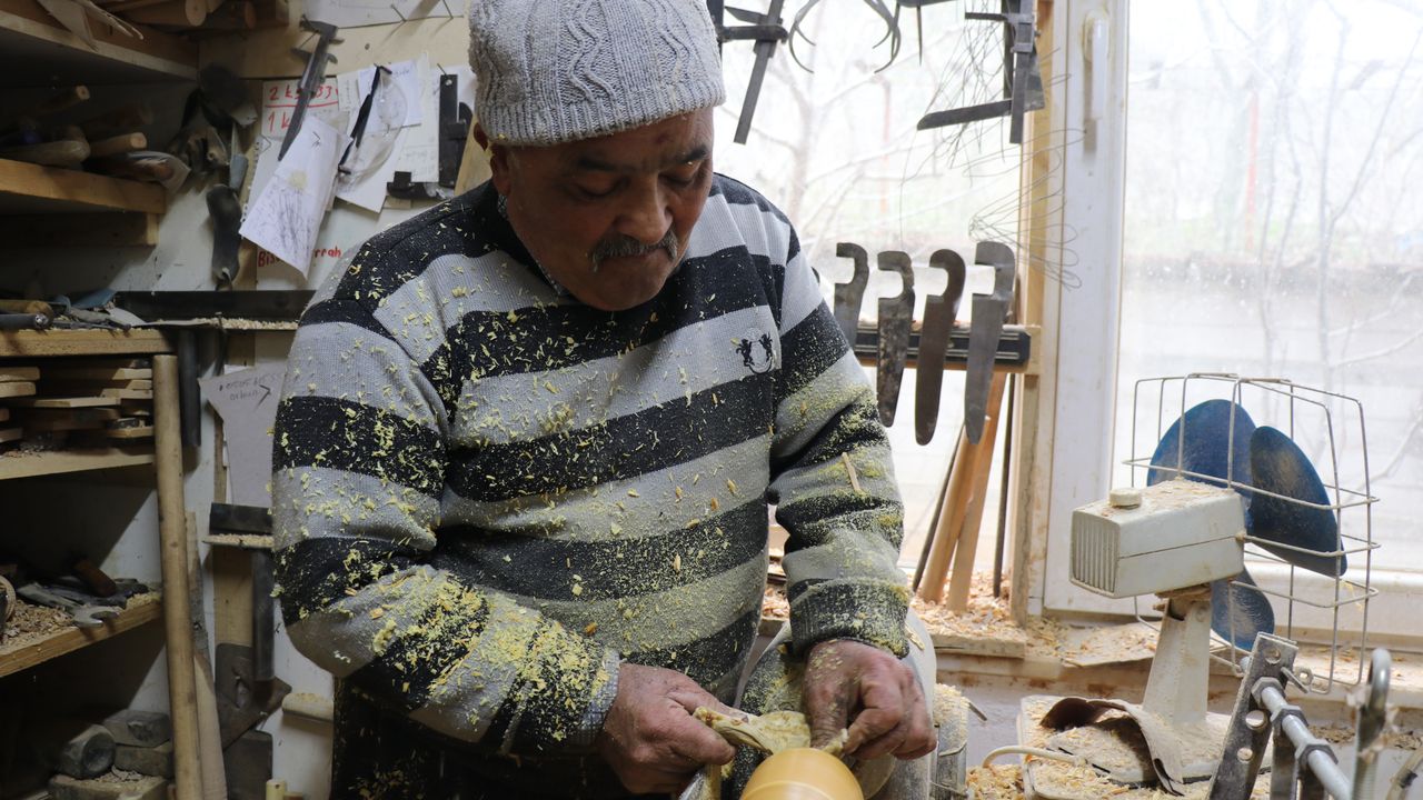 Geçimini sağladığı atölyesinde ahşaptan sehpa, mumluk, şekerlik ve çeşitli dekoratif ürünler tasarlayan Kurt, mesleğini gelecek nesillere aktarmayı hedefliyor.