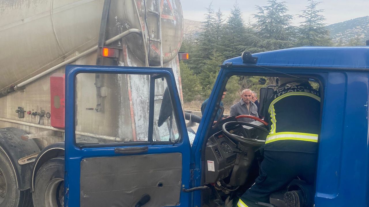 Kazada, kamyon sürücüsü Mehmet Ç. itfaiye ekiplerince sıkıştığı yerden çıkarıldı.