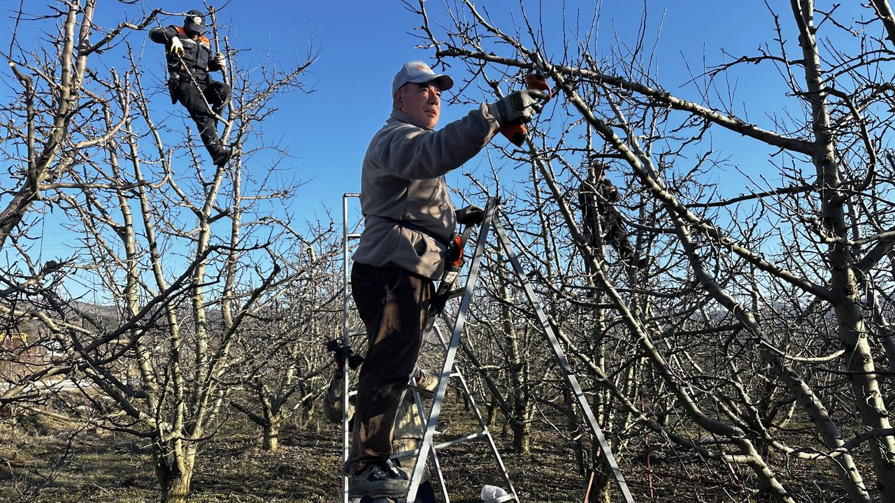 Kent genelinde meyvecilik ile uğraşan çok sayıda üretici, sabahın erken saatlerinde bahçelerine giderek meyvenin sağlıklı gelişmesi ve kaliteli ürün elde edilmesi amacıyla budama işlemlerini gerçekleştiriyor.