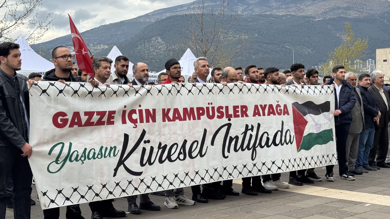Kahramanmaraş Sütçü İmam Üniversitesi İnsan Hakları ve Özgür Gençlik Öğrenci Topluluğu öncülüğünde Merkez Cami bahçesinde toplanan öğrenciler, 'idam yasası'na tepki gösterdi.