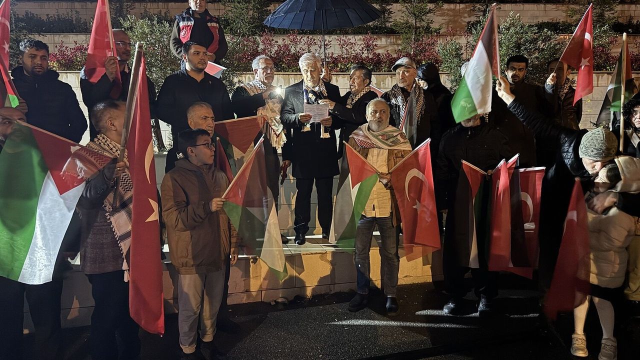 Açıklamanın ardından dua eden grup, ellerinde Türk ve Filistin bayraklarıyla araç konvoyu düzenleyerek İsrail'e tepkilerini sürdürdü.
