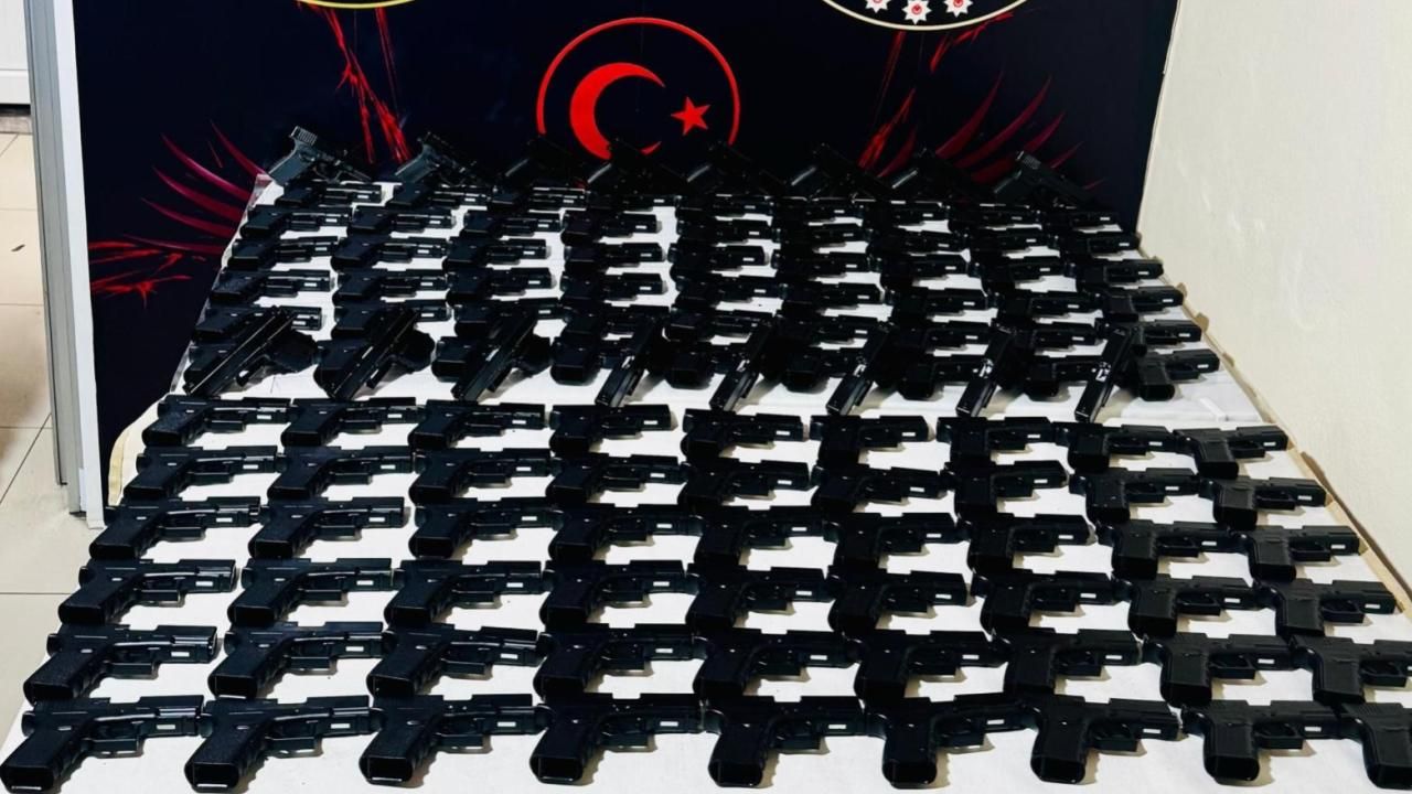 Aramada, kümese gizlenmiş 124 ruhsatsız tabanca, 76 tabanca sürgüsü, 28 namlu ile 39 icra mili ve yayı bulundu.