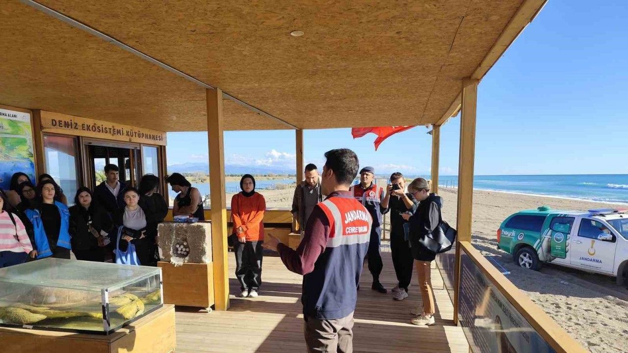 Antalya’da Jandarma ekipleri üniversite öğrencilerine çevre koruma eğitimi vererek kıyı temizliği yaptı.