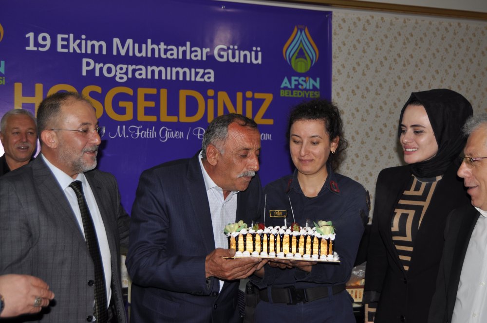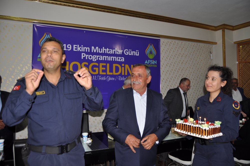 Afşin İlçe Jandarma Komutanı Binbaşı Özgür Gümüşay, 19 Ekim Muhtarlar Günü dolayısıyla muhtarlara pasta sürprizi yaptı.