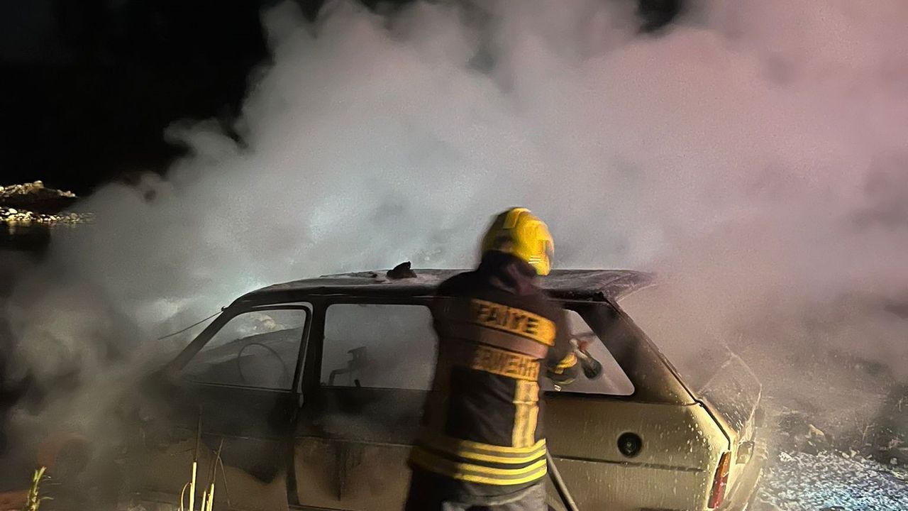 Ekiplerin müdahalesiyle söndürülen yangında araçta hasar oluştu.