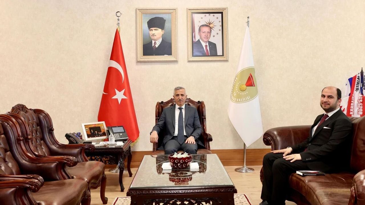 Hacı Mehmet Boyraz, Kahramanmaraş Sütçü İmam Üniversitesi Siyaset Bilimi ve Uluslararası İlişkiler Bölümü Dr. Öğretim Üyesi olarak, Vali Ünlüer’i makamında ziyaret etti.