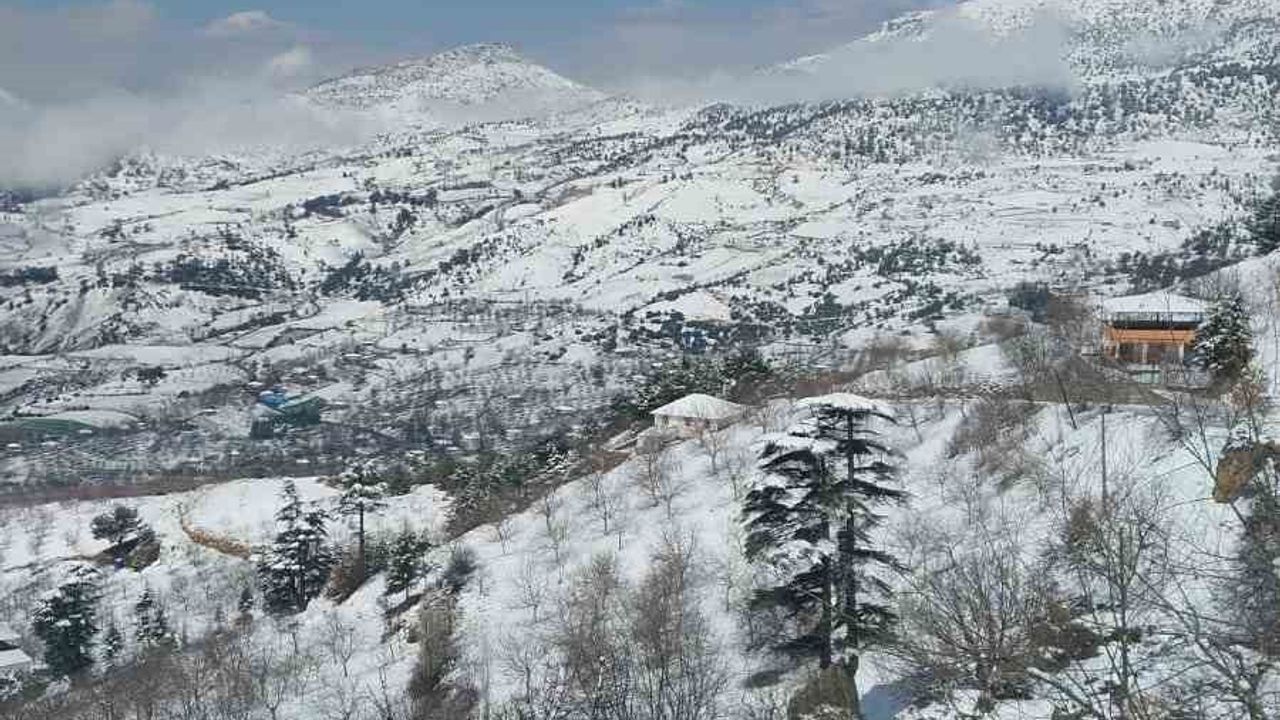 Kahramanmaraş'ta etkili olan kar yağışı, özellikle yüksek kesimleri beyaza bürüdü.