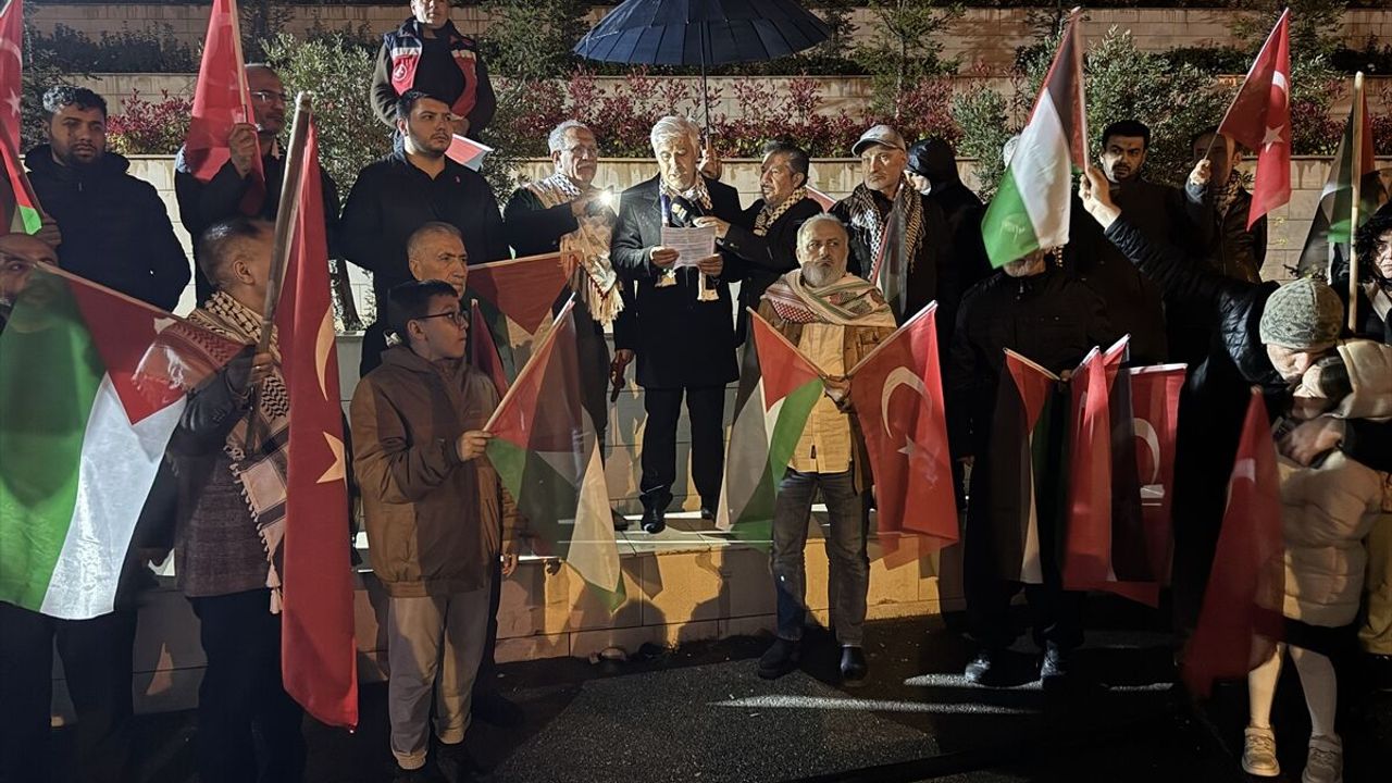 Açıklamanın ardından dua eden grup, ellerinde Türk ve Filistin bayraklarıyla araç konvoyu düzenleyerek İsrail'e tepkilerini sürdürdü.