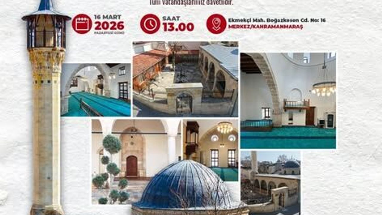 16 Mart 2026 Pazartesi günü saat 12.30’da yapılacak programda camilerin tarihi ve kültürel değerleri hakkında bilgilendirmeler yapılacak, restorasyon sürecinde gerçekleştirilen çalışmalar tanıtılacak. Yeniden ibadete açılan camiler, şehrin tarihi dokusunu yaşatan önemli mekanlar olarak vatandaşların ziyaretine sunulacak. Kahramanmaraş halkı, bu anlamlı açılış etkinliğine davet edildi.