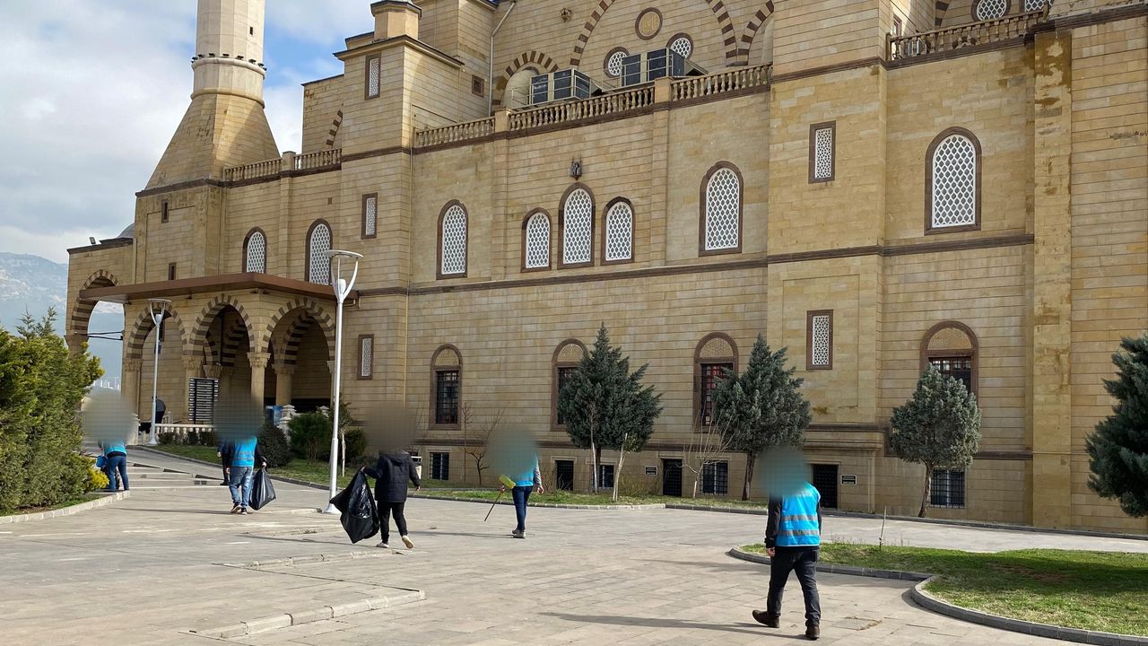 Cami ve mescitlerin halılarını süpüren yükümlüler, daha sonra mermerleri, kütüphane bölümlerini, ayakkabılıkları, mihrap, minber ve avizeleri titizlikle temizledi.
