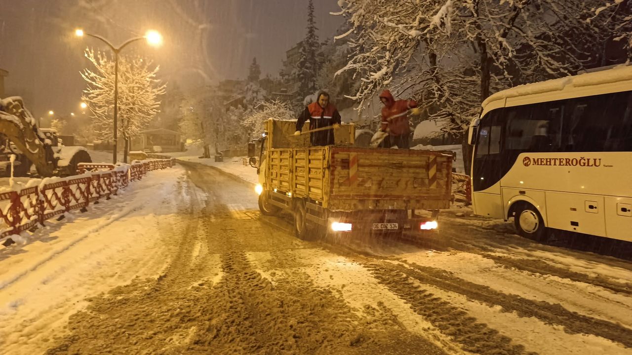 Kar ve soğuk havanın etkisini sürdürdüğü kentte, Büyükşehir ve ilçe belediyeleri ekipleri kar temizleme çalışması yürütüyor.