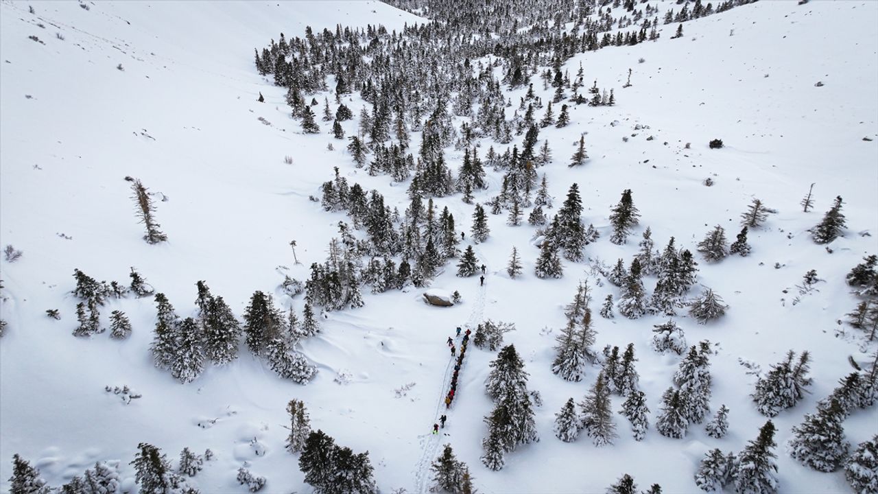Beyaza bürünen Aladağlar Milli Parkı'ndaki kış manzarası dronla kaydedildi.