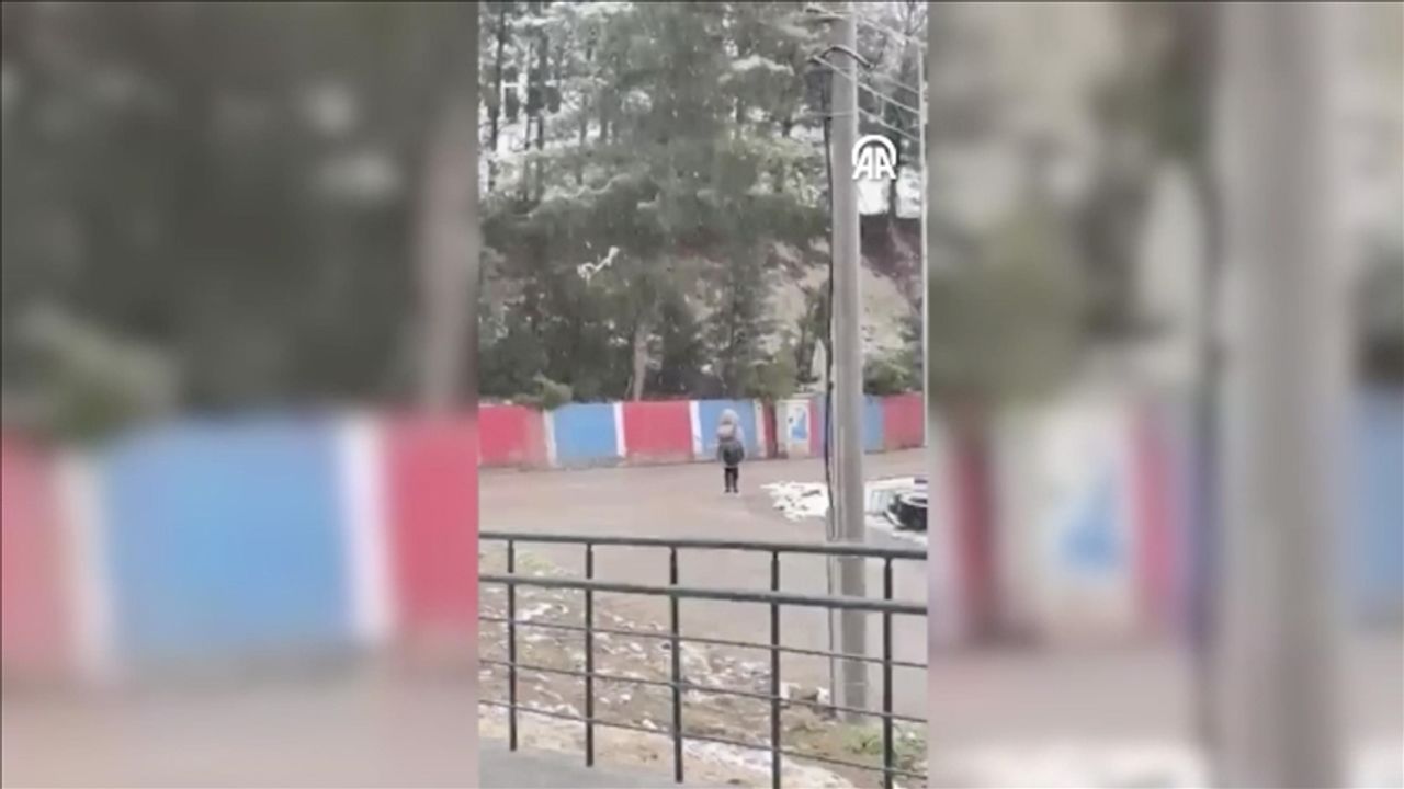 Karabük'te okula giderken İstiklal Marşı'nın okunduğunu duyan bir öğrenci, kar yağışı altında altında saygı duruşunda bulundu.