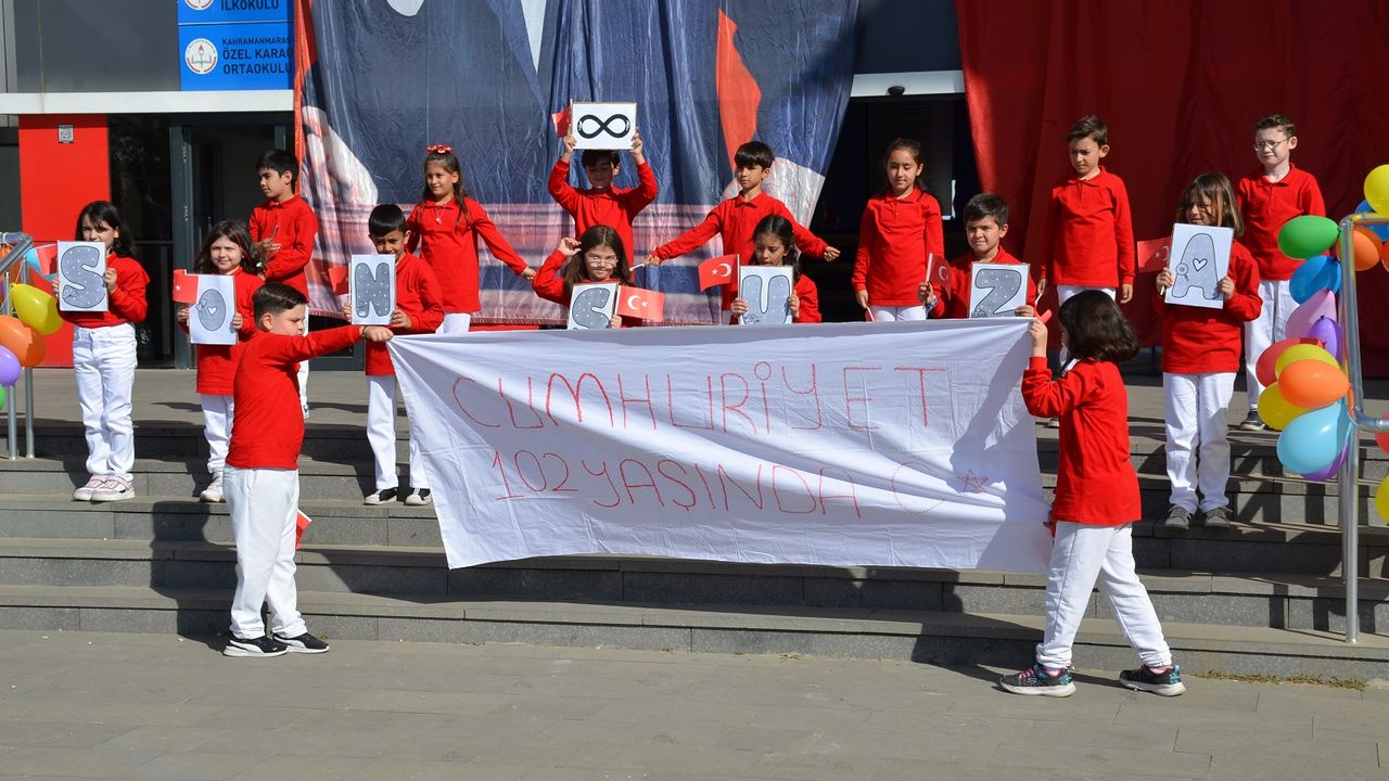 Karaoğlan Koleji, Cumhuriyetin 102. kuruluş yıl dönümünü büyük bir heyecan ve gururla kutladı. Okul bahçesinde düzenlenen kutlama programına öğretmenler, öğrenciler, veliler katıldı.