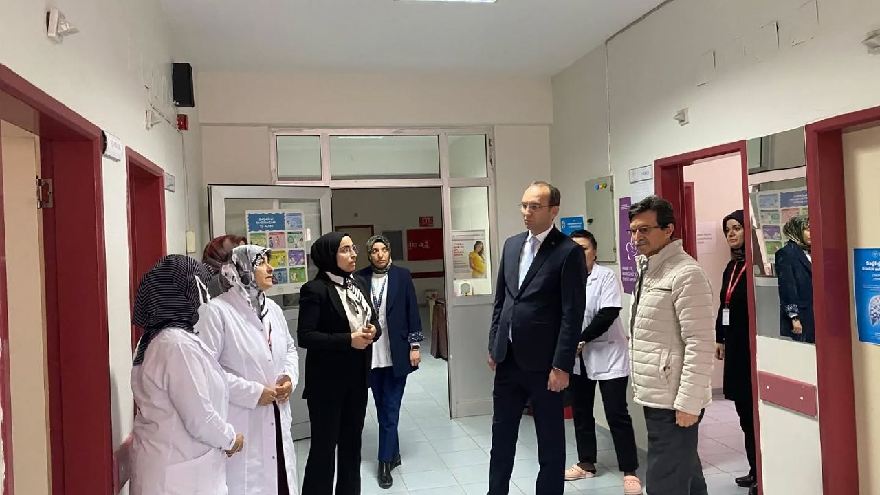 Ziyarette aile hekimleri, sağlık personeli ve vatandaşlarla bir araya gelen Kaymakam Sarıdoğan, sağlık hizmetlerinin işleyişi hakkında bilgi aldı.