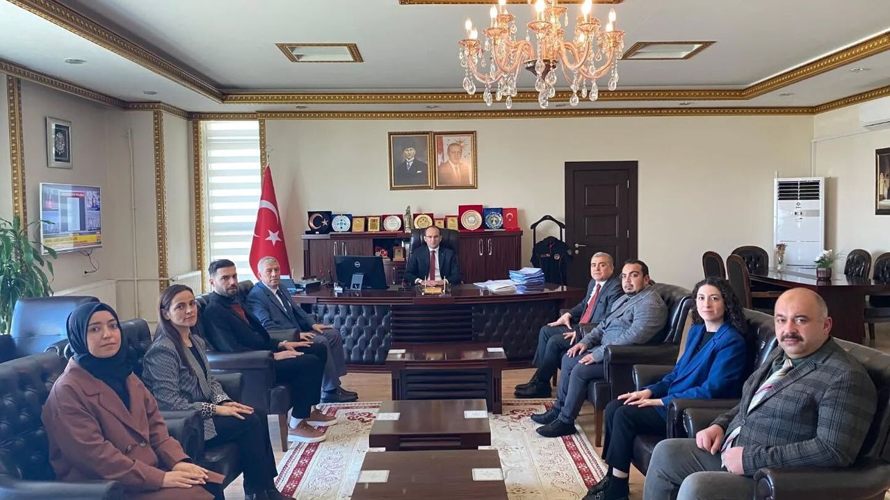 Afşin Kaymakamı Muammer Sarıdoğan, İlçe Milli Eğitim Müdürü Bünyamin Özdemir ve beraberindeki İlçe Milli Eğitim Müdürlüğü personelini makamında kabul etti.