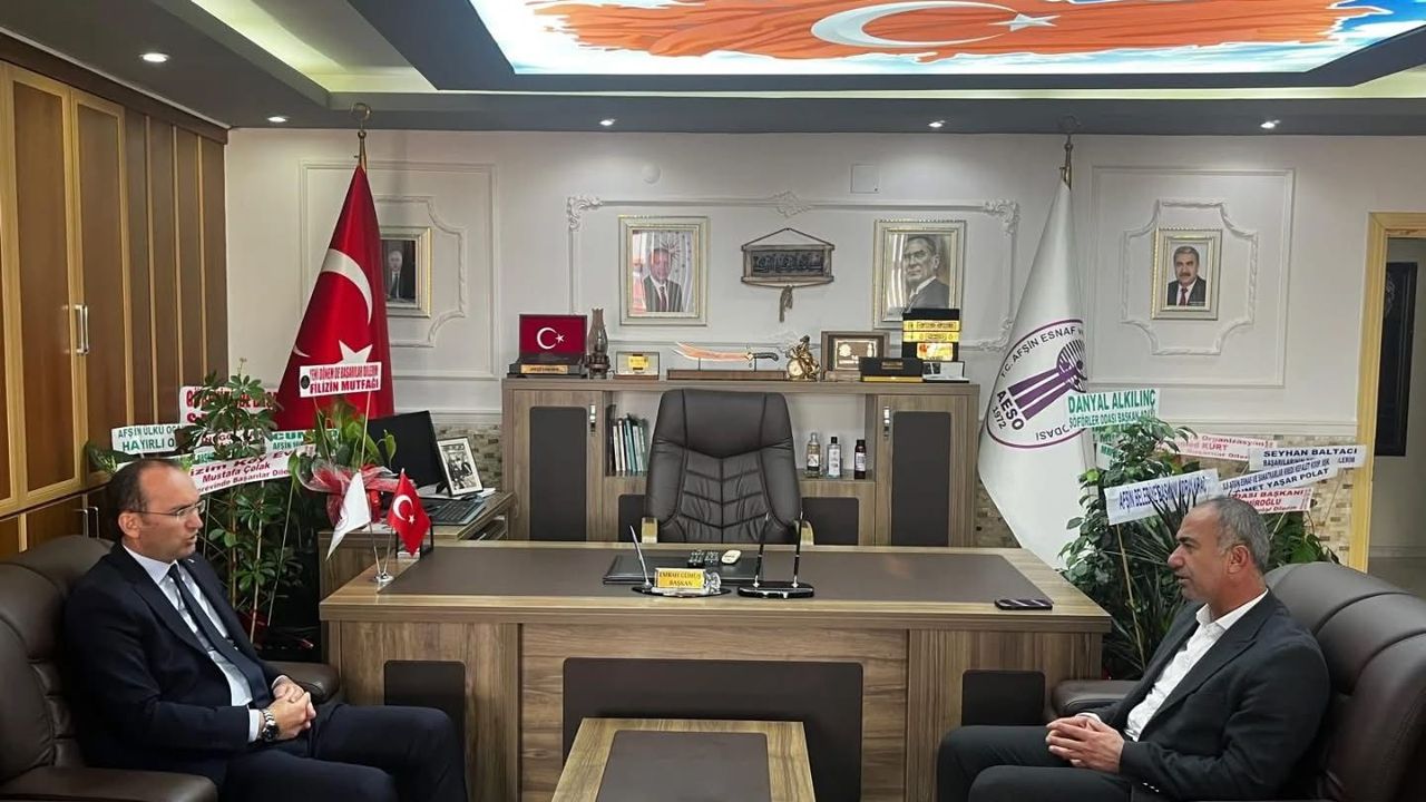 Afşin Kaymakamı Muammer Sarıdoğan, yapılan seçimler sonucunda yeniden göreve seçilen Esnaf ve Sanatkârlar Odası Başkanı Emrah Gümüş ile Şoförler ve Otomobilciler Odası Başkanı Adnan Kabaağaç’a hayırlı olsun ziyaretinde bulundu.