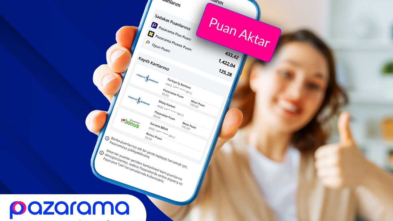 İş Bankası’nın e-ticaret sektöründe faaliyet gösteren %100 yerli pazaryeri iştiraki Pazarama, kullanıcılarına kart puanlarını tek noktadan yönetme kolaylığı sağlayan yenilikçi yapısıyla öne çıkıyor. Banka ve kredi kartlarında biriken puanlar, Pazarama uygulamasındaki “Puanlarım” bölümünden hızla Pazarama’ya aktarılabiliyor. Böylece kullanıcılar farklı bankalardaki puanlarını tek platformda birleştirerek online alışverişlerin yanı sıra puanlarını Pazarama Tatil üzerinden otel rezervasyonu, uçak bileti veya araç kiralama işlemlerinde güvenle kullanabiliyor.