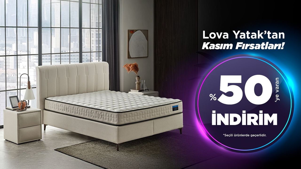 Türkiye’nin rahat uyku markası Lova Yatak, 6-18 Kasım tarihleri arasında yatak, baza, başlık ve ev tekstili ürünlerinde yılın en avantajlı fırsatlarını sunuyor.