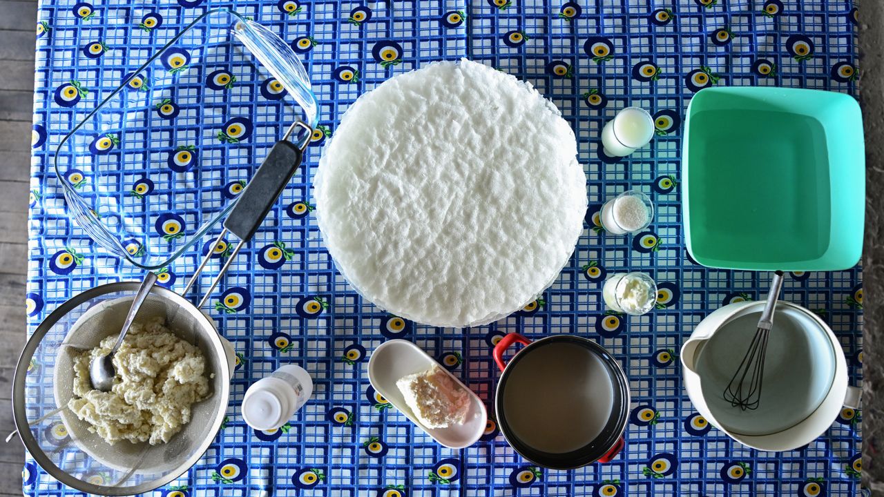 1. Kaynamış süte yoğurt suyu ilave edilip sütün kesilmesi sağlanır.