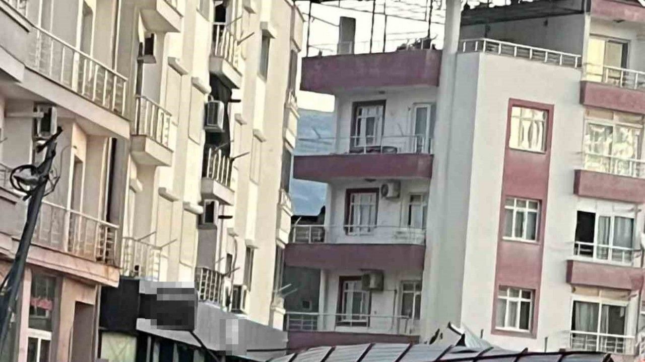 Mersin’in Mut ilçesinde etkili olan fırtına bir binanın çatısını yola savurdu.