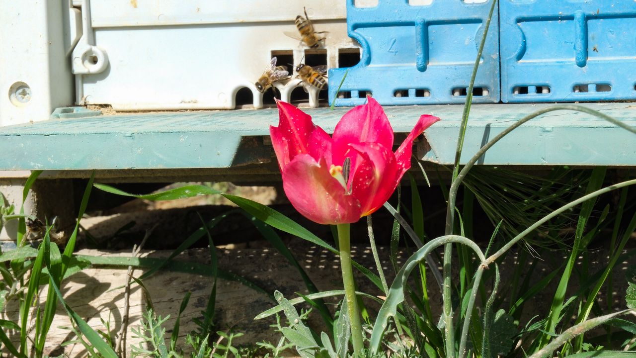 Arazileri renklendiren laleler, polen toplayan arılar için besin kaynağı oldu.