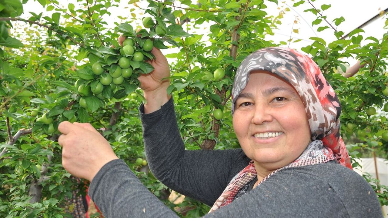 Çiftçilerin mart ayında seralardaki eriklerini topladığı ilçede hasat mesaisi meyvelerin olgunlaştığı bahçelere taşındı.