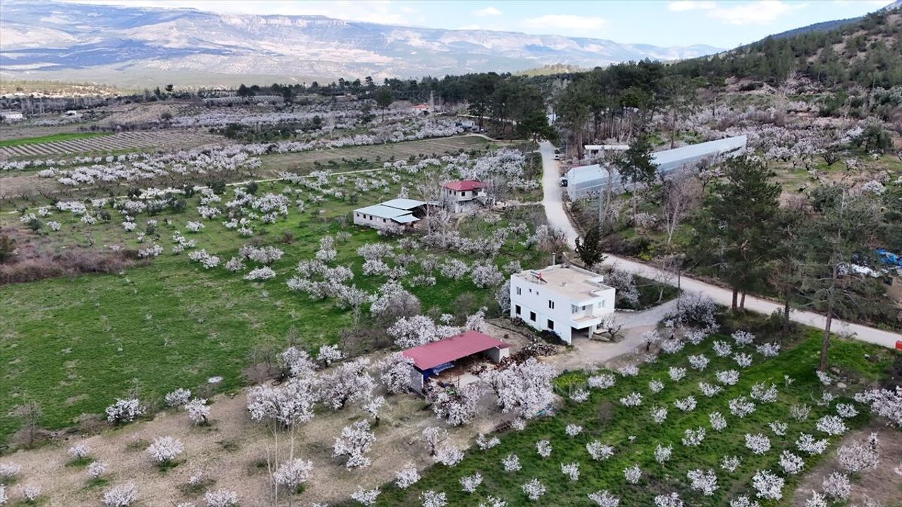 Mersin'in Mut ilçesinde çiçek açmasıyla beyaza bürünen erik ağaçları dronla kaydedildi.